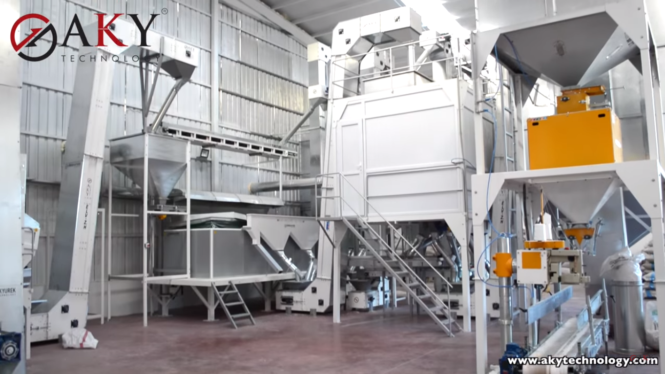 Within the plant; 2 Excell Cleaners 308 Cleaning Machine, Mega Boy Gravity Seperator, Vibro Stone seperator, 5-channel Fotosorter Color Separation Machine and Automatic Bagging Machine.